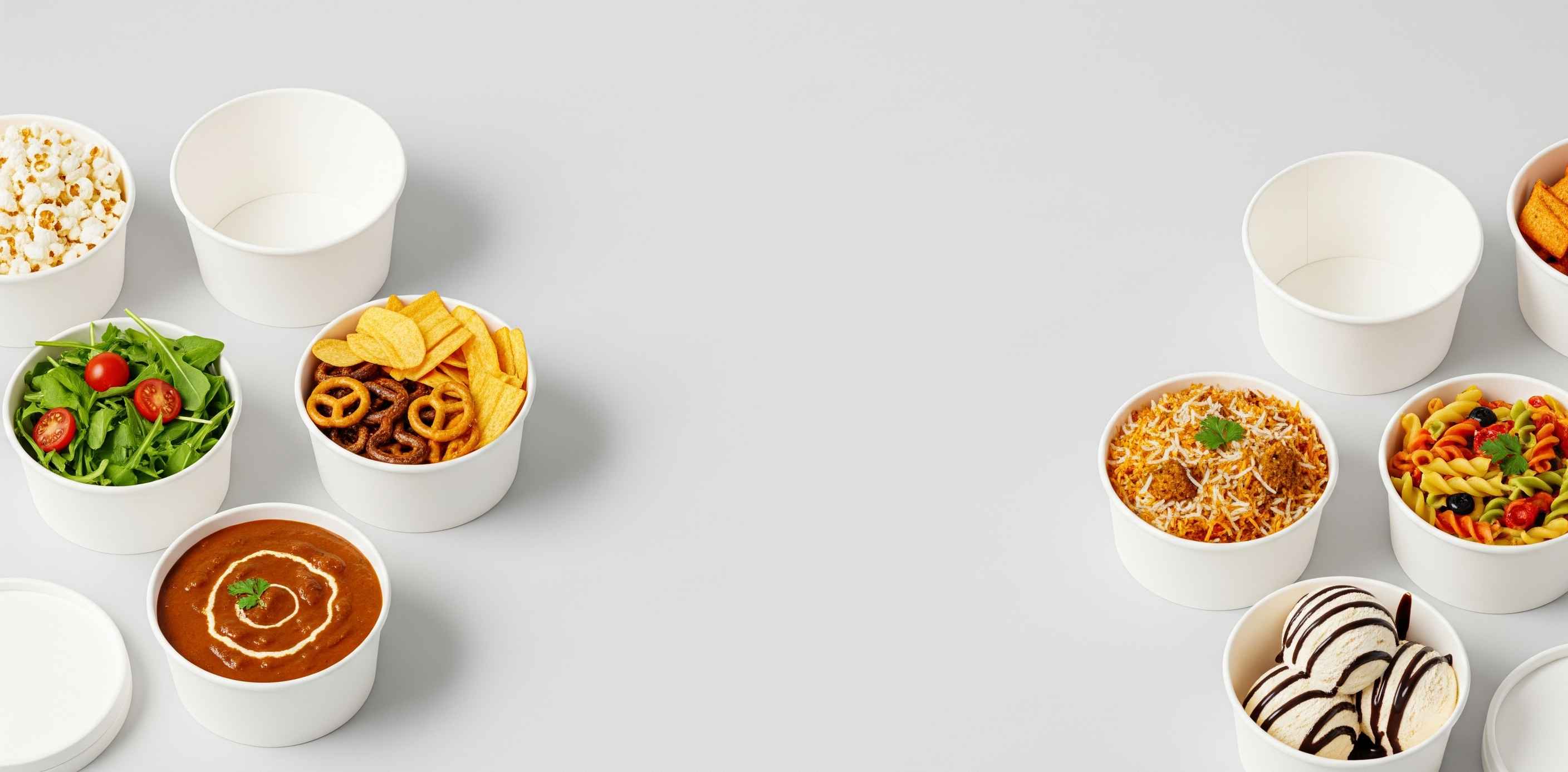 Sturdy disposable bowls perfect for soups, salads, noodles, and other wet foods.